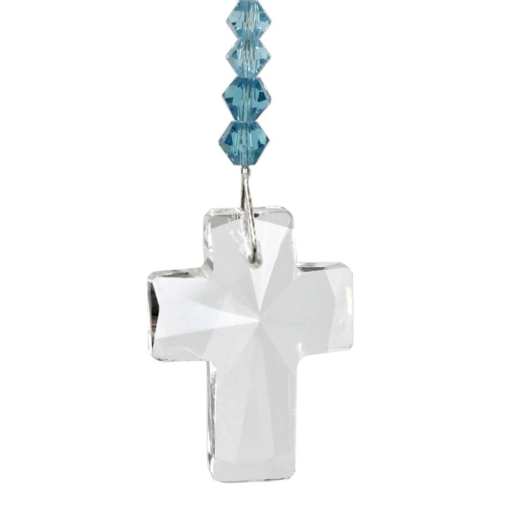 These crystal crosses make a lovely gift and serve as a reminder of faith or as a symbol of one’s love for another. Our Aquamarine cross features a clear crystal cross topped with crystals in shades of aqua. Beautiful gift comes with a sheer organza gift bag and is recommended for indoor use. Glass crystals and beads, 3.25 in. Overall Length, 7 in. with hanging wire