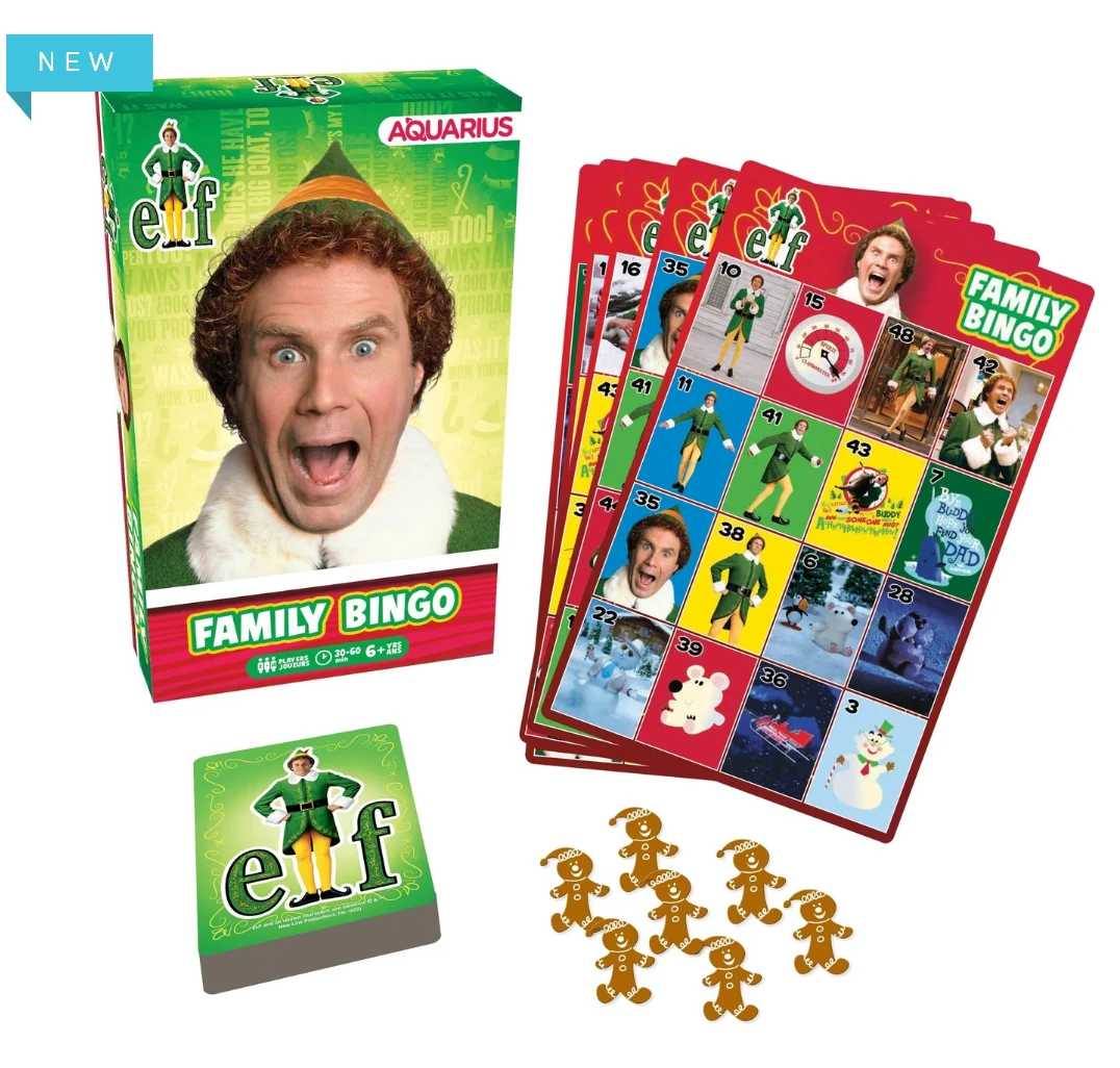 YOUR FAVORITE HUMAN SIZED ELF:Â Are you an Elf fan? Well this AQUARIUS bingo game was made for you. The set includes 18 bingo cards! This game not only looks cool but is fun for kids while learning