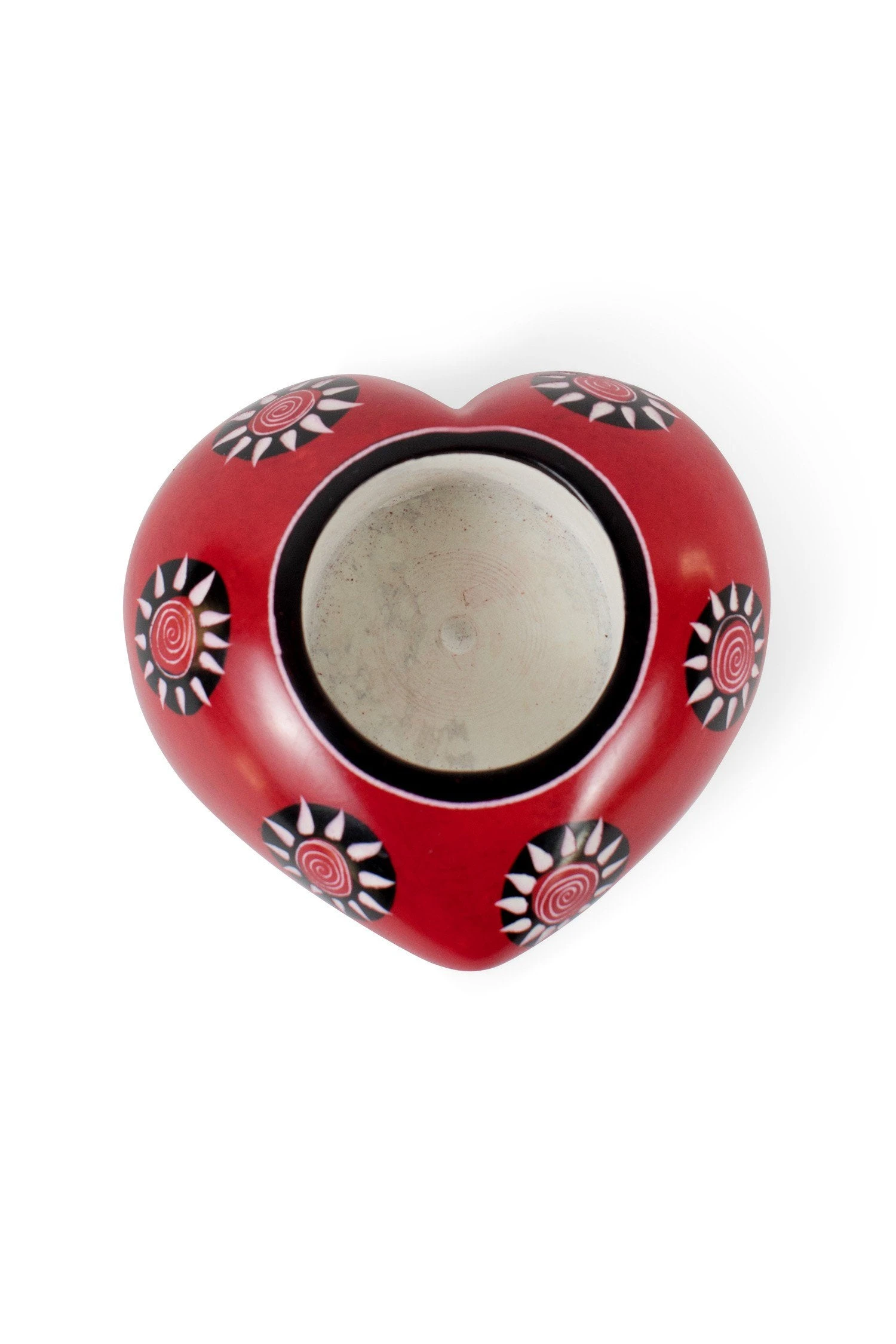 The beautifully carved and hand-painted Kisii Heart Candleholder will bring a little light to their heart any time of the year! Kisii soapstone, found only in Kenya, is a soft stone, easy to carve into many forms. Its satiny finish is achieved through multiple stages of sanding, followed by waxing. In some cases, as with this piece, artisans also apply paint. Patterns vary so please reach out before ordering for a photo of currently in-stock designs (or we can surprise you!) 3Lx3Wx2H inches; handcrafted in Kenya. Sold individually.