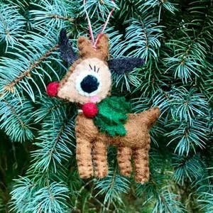 Rudolph The Reindeer Hand-Felted Wool Ornament Handcrafted In Nepal