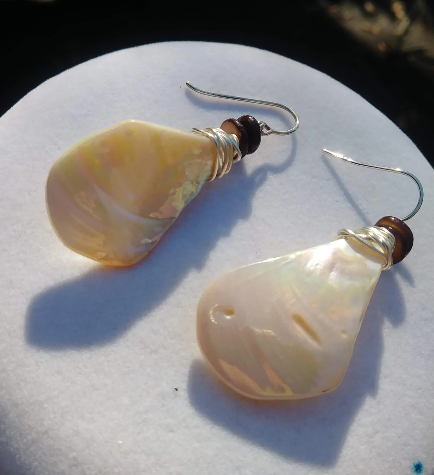 Simple. Stunning. The teardrop shaped Shells are suspended from Sterling Silver wire, with Sterling Silver French Hooks. The shell measures approximately 1 3/4 inches by 3/4 inch.
